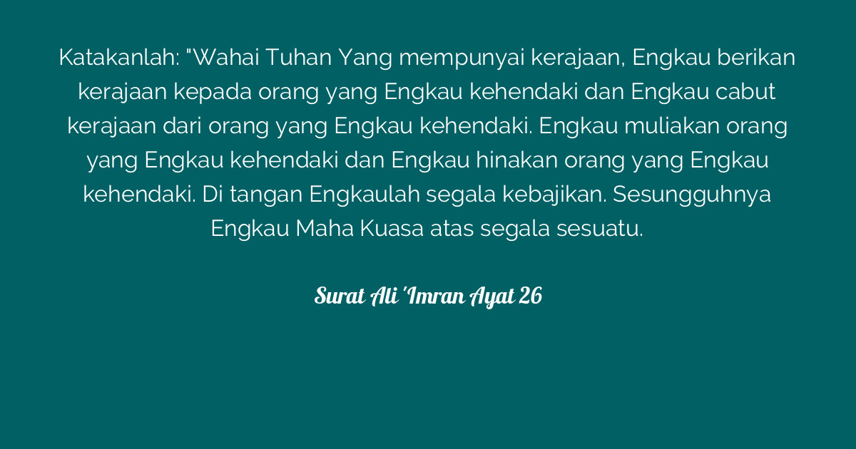 Surah Ali Imran Ayat 26-27 Beserta Artinya / Tafsir Ibnu Katsir Surat Al Baqarah Ayat 26 27 Alqur Anmulia : Wahai tuhan yang mempunyai kerajaan, engkau berikan kerajaan kepada orang yang engkau kehendaki dan engkau cabut kerajaan dari orang .